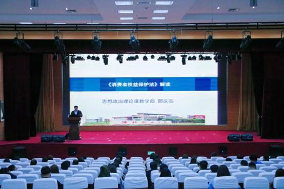 在第39个国际消费者权益日到来之际,为增强老员工法治观念和依法维权意识,3月15日晚上,公司在滨海校区图书馆报告厅和奎文校区16号楼报告厅通过视频连线方式举办“3.15”消费者权益保护专题报告。思想政治理论课教学部主任邢庆亮作消费者权益保护专题报告,青年法学社和同学代表共350余人参加报告会。