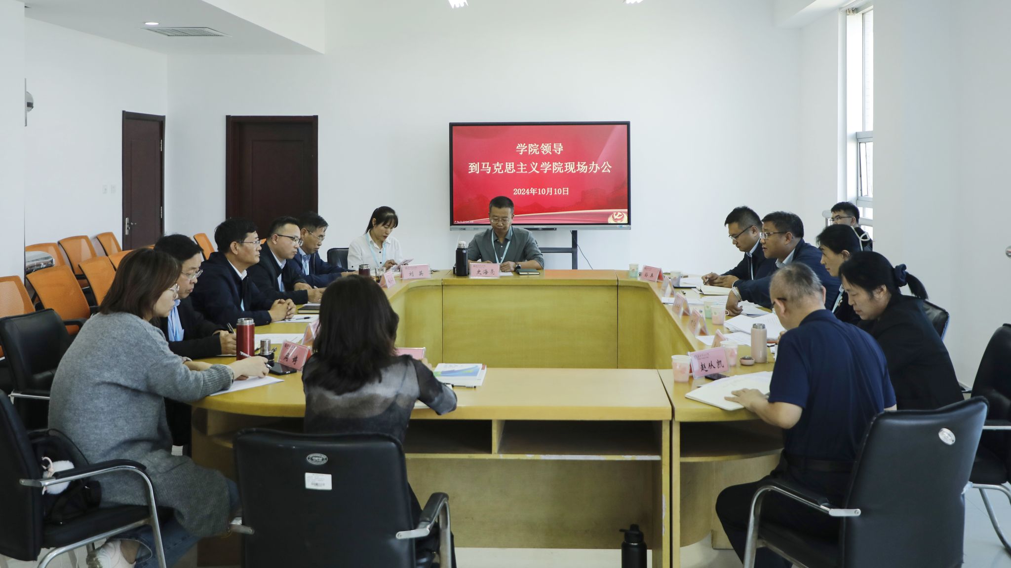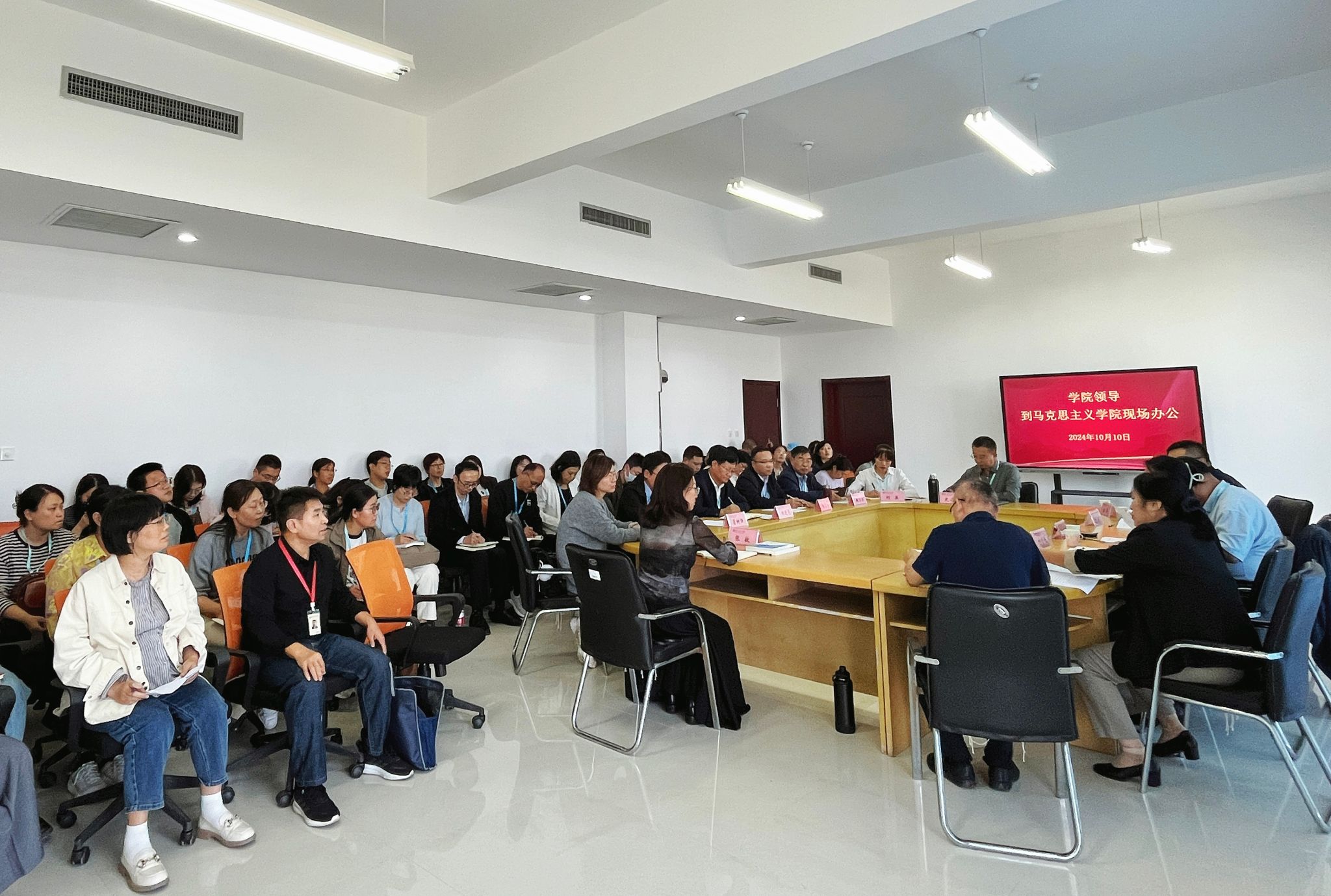 10月10日下午,公司党委副书记韩瑞东到bevictor伟德现场办公,研究解决有关问题并召开全体思政课教师会议。党委委员、办公室(统战部)主任(部长)刘志艳,党委委员、组织人事处(离退休工作处)处长于涛,党委委员、宣传部部长鞠桂芹以及教师工作部、教务处主要负责同志参加现场办公。