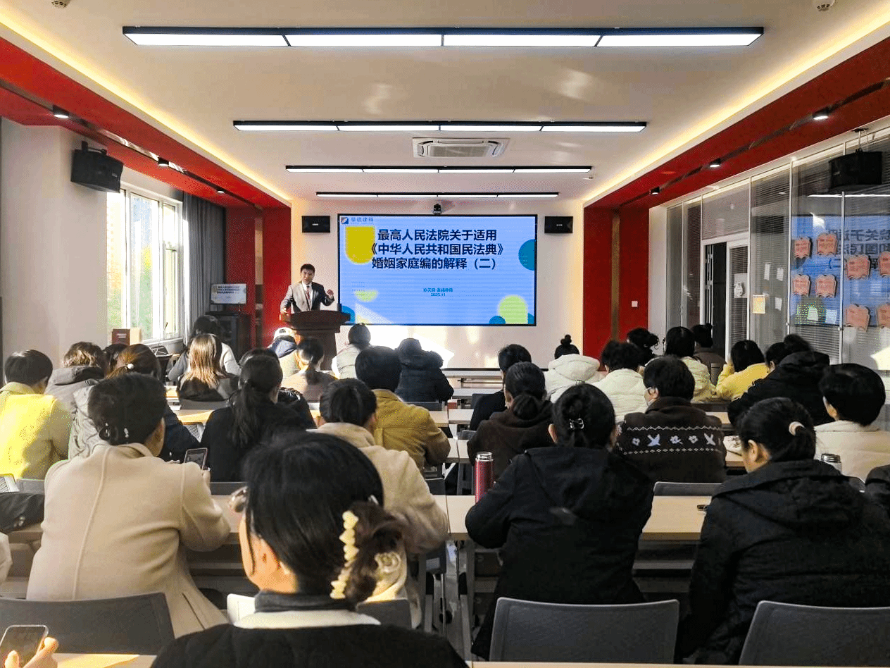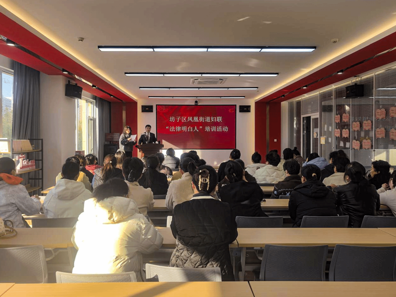为深入贯彻落实《中华人民共和国民法典》及相关司法解释精神,切实提升基层妇联干部婚姻家庭纠纷调解水平,11月20日,公司教师孙天锋赴潍坊市坊子区凤凰街道妇联,开展“法律明白人”专题培训。50余名妇联干部参加学习。